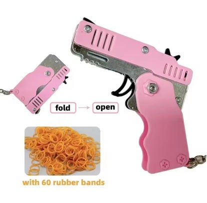 Rubber Band Shooter Playset, Foldable Six-Shot with Keychain for Home Party Activities
